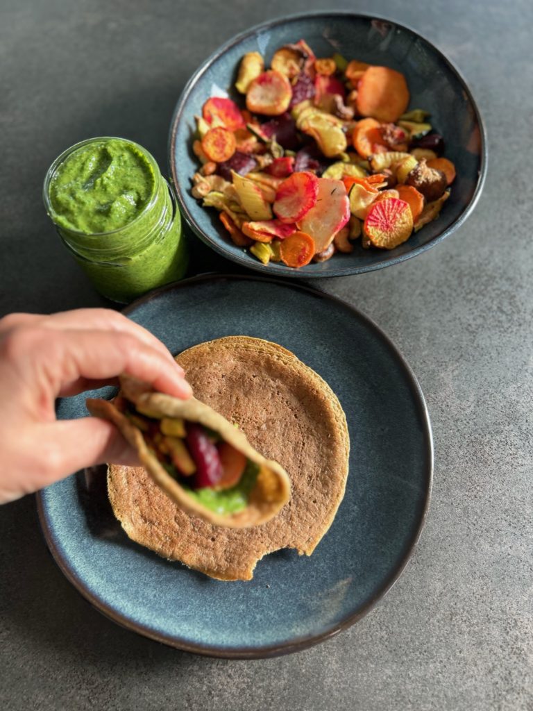 - Or enjoy with veggies for lunch, spreading some mashed avocado or guacamole or my detoxing herbs chutney
