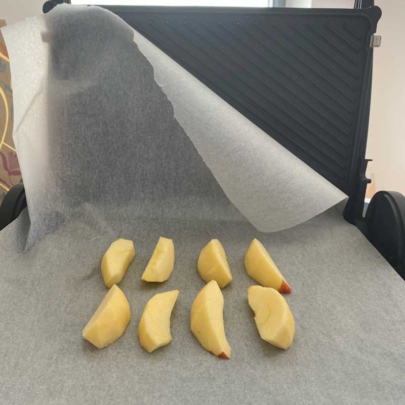 All you have to do is grill the apples with some coconut oil or ghee, in a toaster or oven and when they are soft, sprinkle some magic!