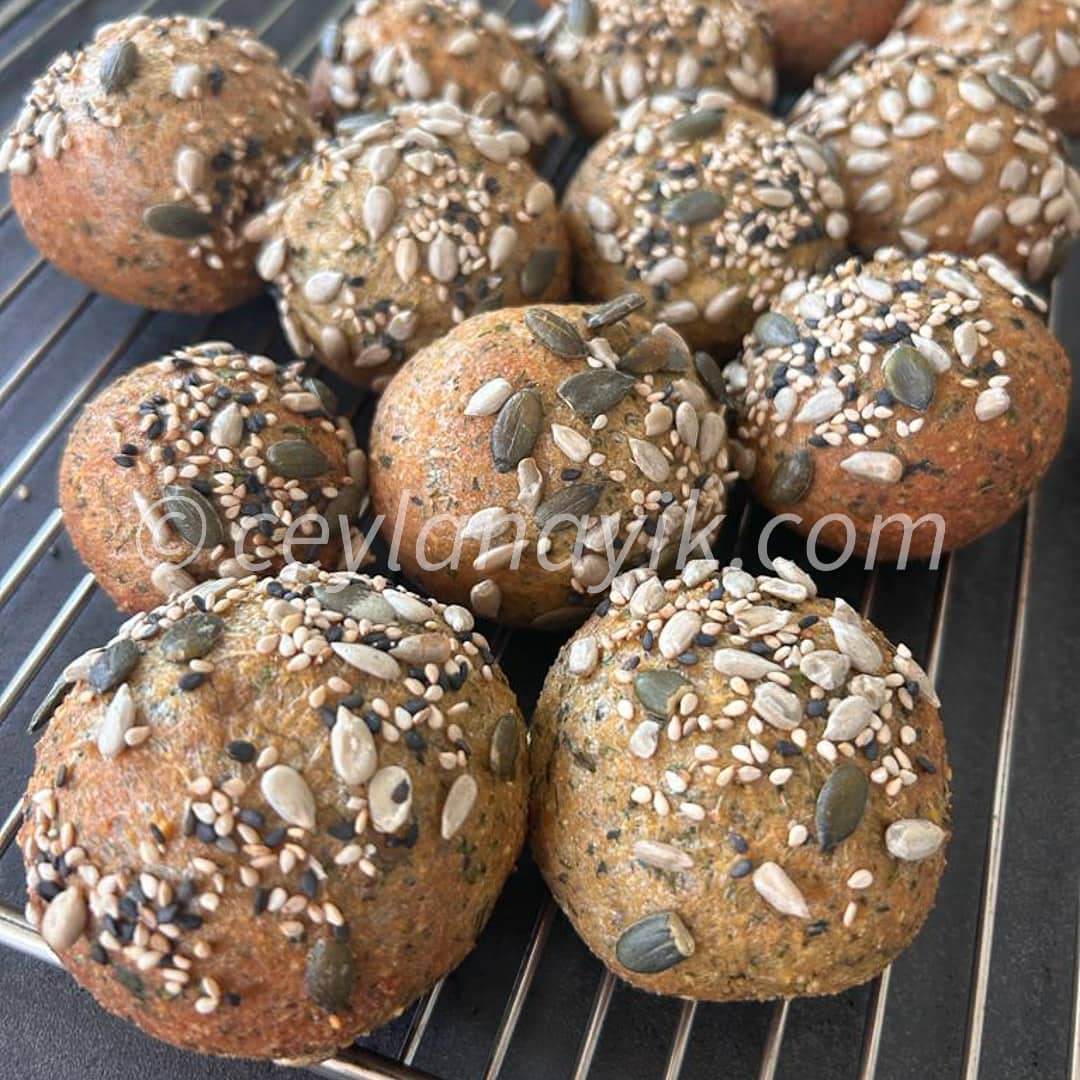 - Without waiting, shape the bread rolls by hand fast, with wet hands and roll the top in the seed-mixture and place it on the baking tray.