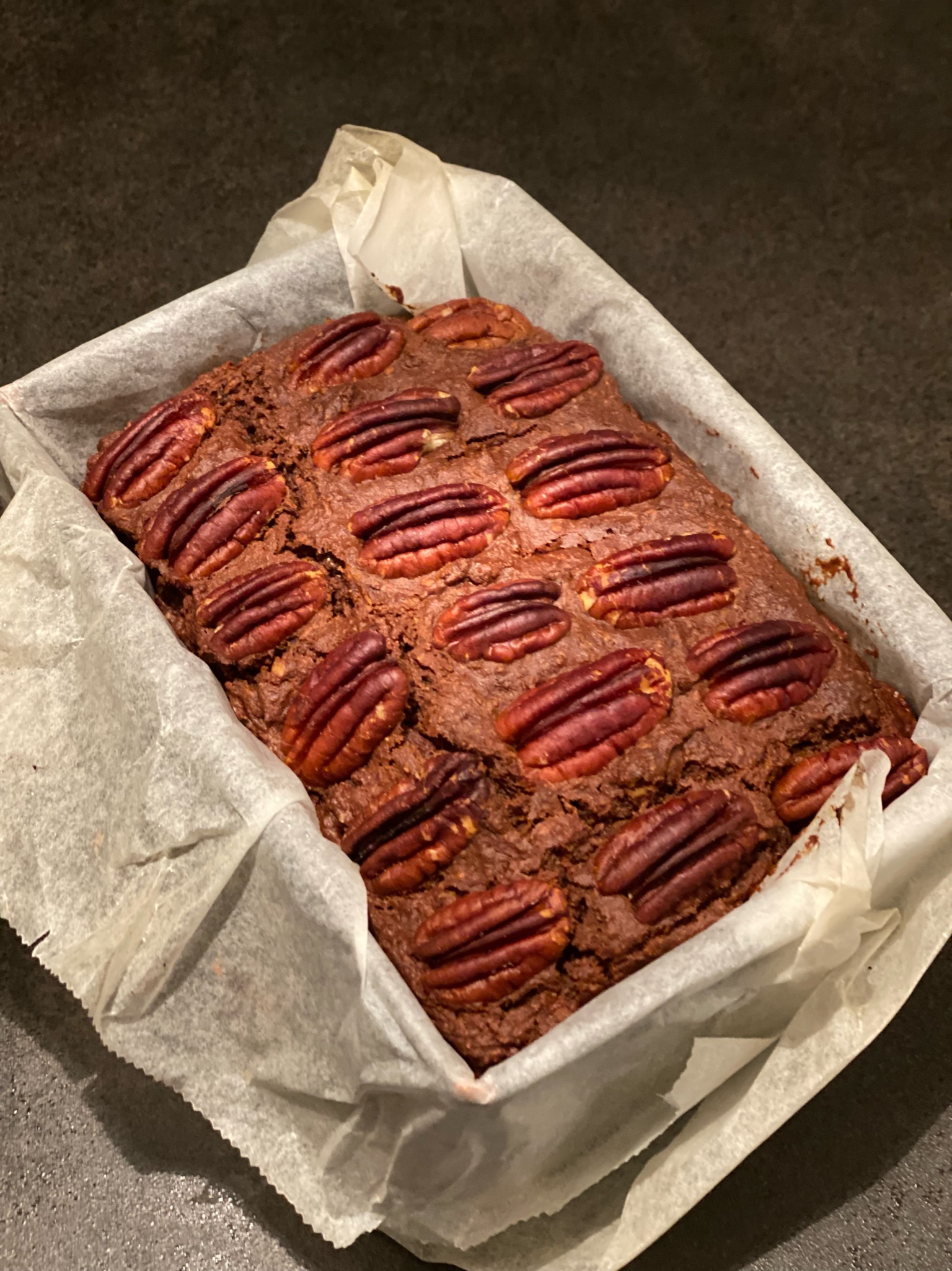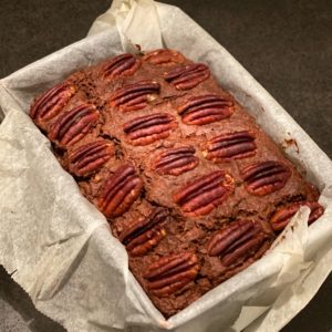 - Pour into tray, decorate with pecans or walnuts