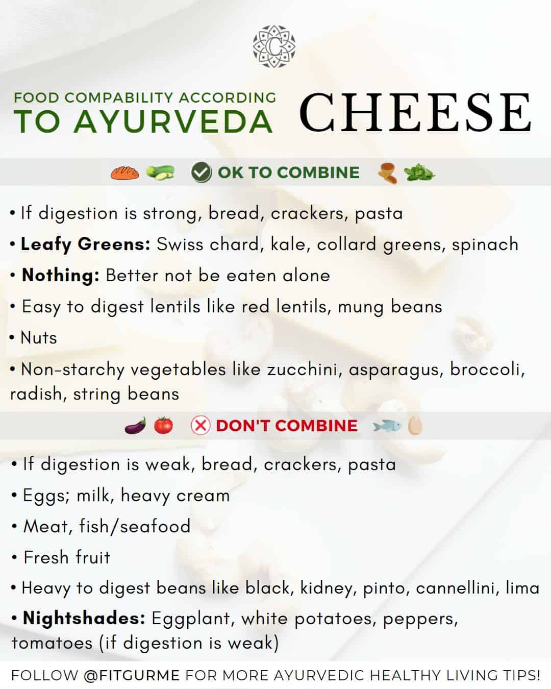 Today I will share the compatibility of dairy with other food. Cause dairy intolerances are so common that some of us forgot the amazing taste and benefits of an organic, grass-fed, fair farming dairy. Dairy is a big subject, needs pages to talk about, especially how to find a good source where you know animals are treated well rather than with cruelty.
