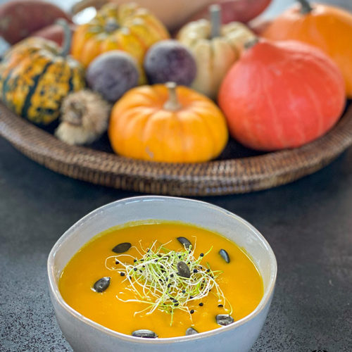 Autumn is even more beautiful with pumpkin and winter vegetables soup! The color, smell, texture, taste, everything soothes the Vata dosha.